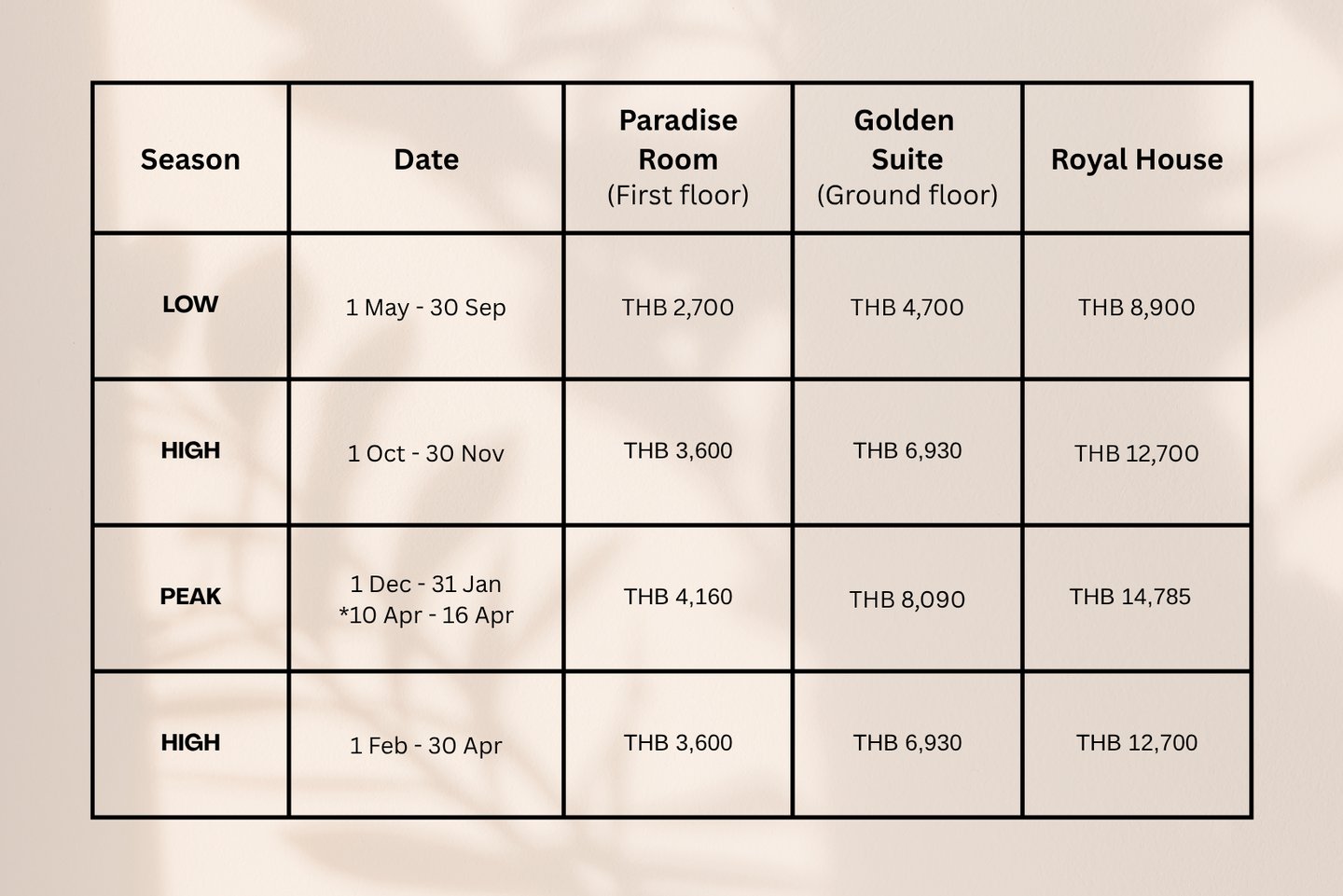 Extra bed charge is 1,000 THB per night, including breakfast,